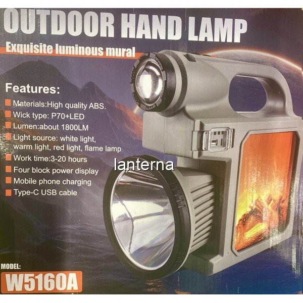 Lanterna LED Solara si USB-C cu LED, Semnalizare Rosie, Decor Semineu pe o parte, si Pano solar pe cealalta latura, cod W5160A.