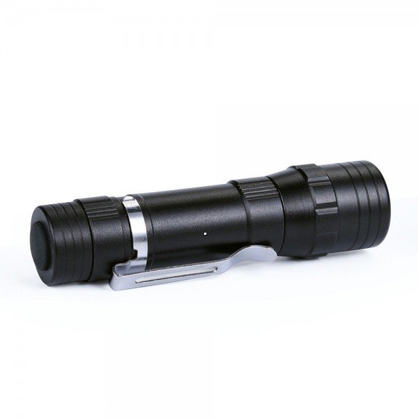 Mini Lanterna de Buzunar cu LED 1W si Cob Led 1W, cu focalizare Zoom si si Agatatoare metalica - Clips de Prindere, functioneaza pe baterii ( neincluse).