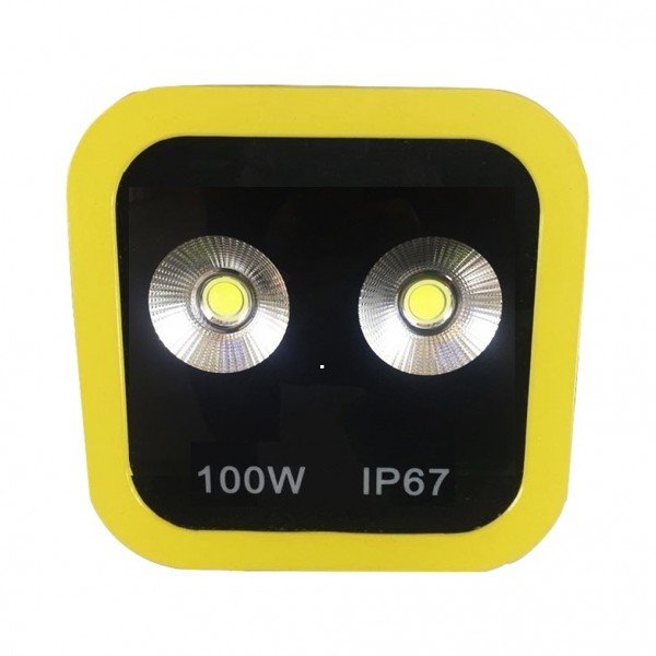 Proiector LED 100W Alb Rece 220V 2x50W Rama Galbena, Proiectoare LED metalice cu 2 LEDuri de 50W.